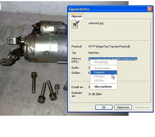 URL des Bildes markieren, mit rechte Maustaste anklicken und kopieren.