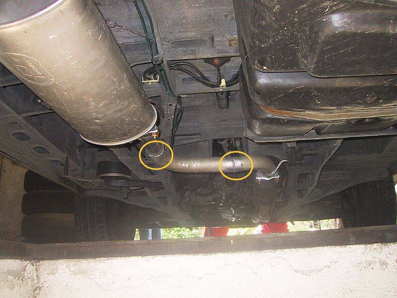 sowie das Verbindungsrohr zwischen Kat und Mitteltopf mußte