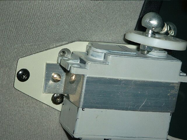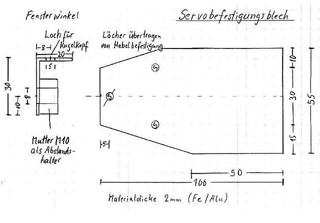 (1mm dick) das Servo befestigt. Der Servohebel muß oberhalb